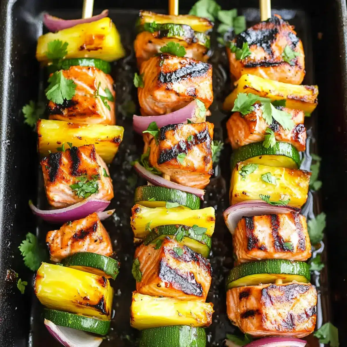 • Watch the Heat: Keep an eye on the grill temperature; too high can burn the kabobs before the salmon cooks through.