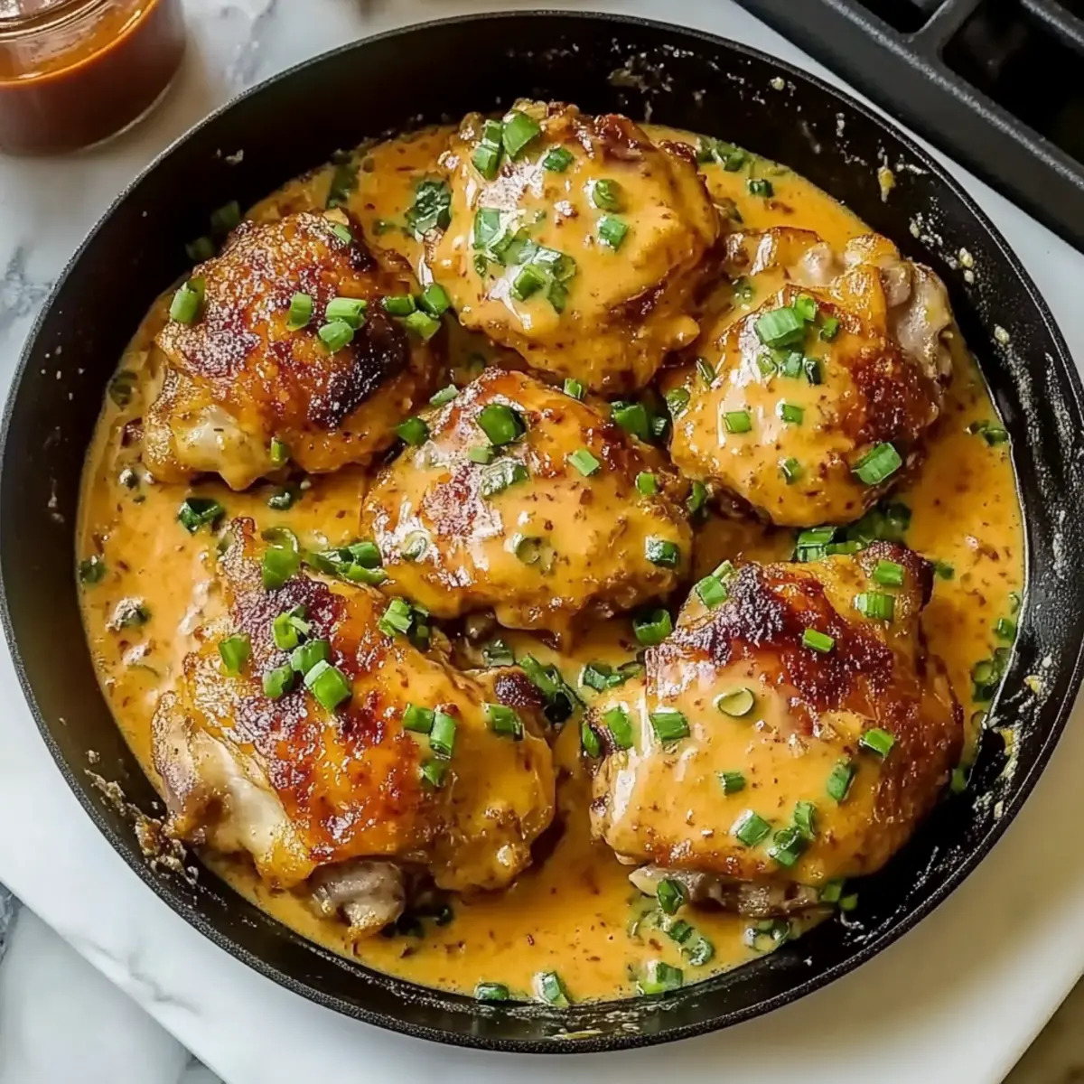 - Return the chicken thighs to the skillet with the sauce. Toss gently until each piece is coated.