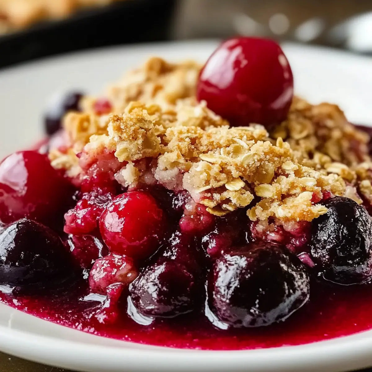 Fresh Berries: A side of plump, ripe berries introduces fresh acidity that complements the richness of the cherry crisp while adding vibrant color.