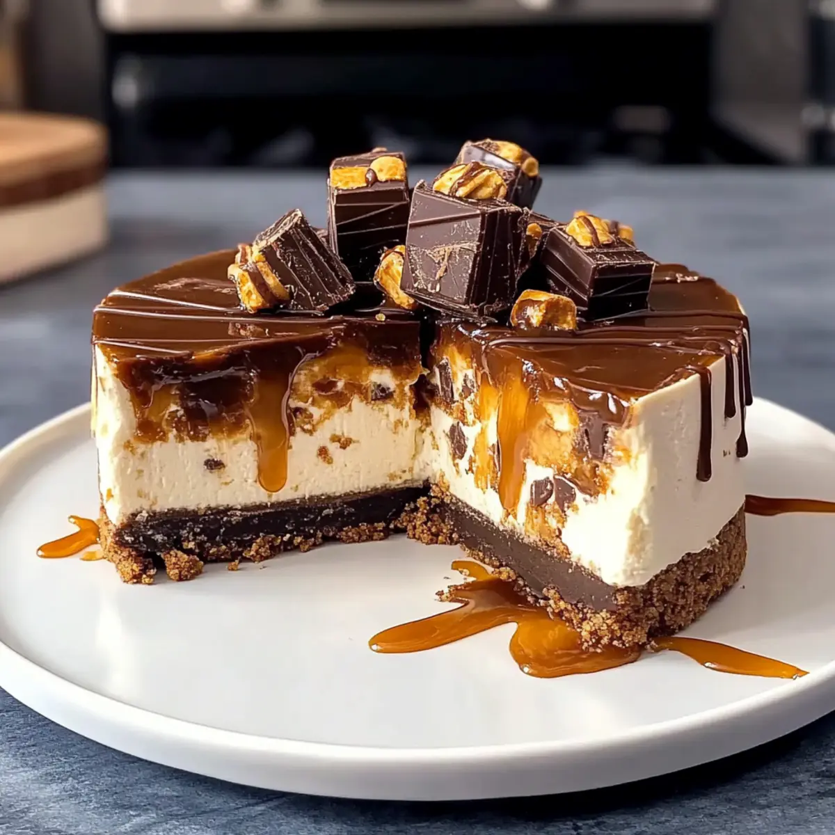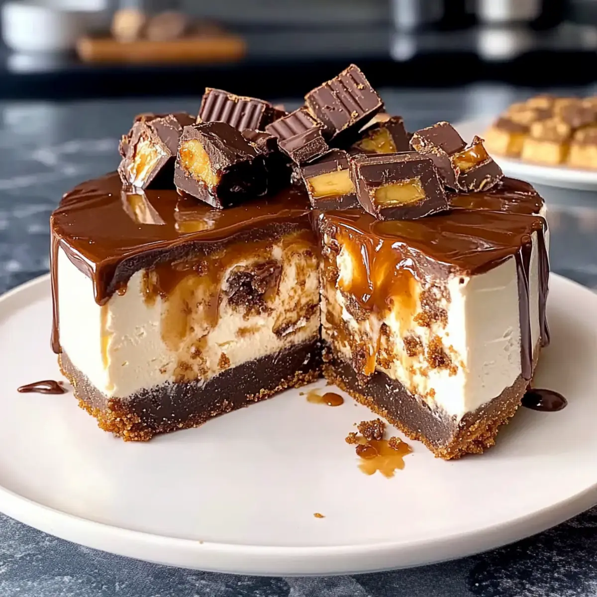 Swap Twix for Reese’s Cups to infuse your cheesecake with a rich chocolate-peanut butter flavor that’s absolutely indulgent. -