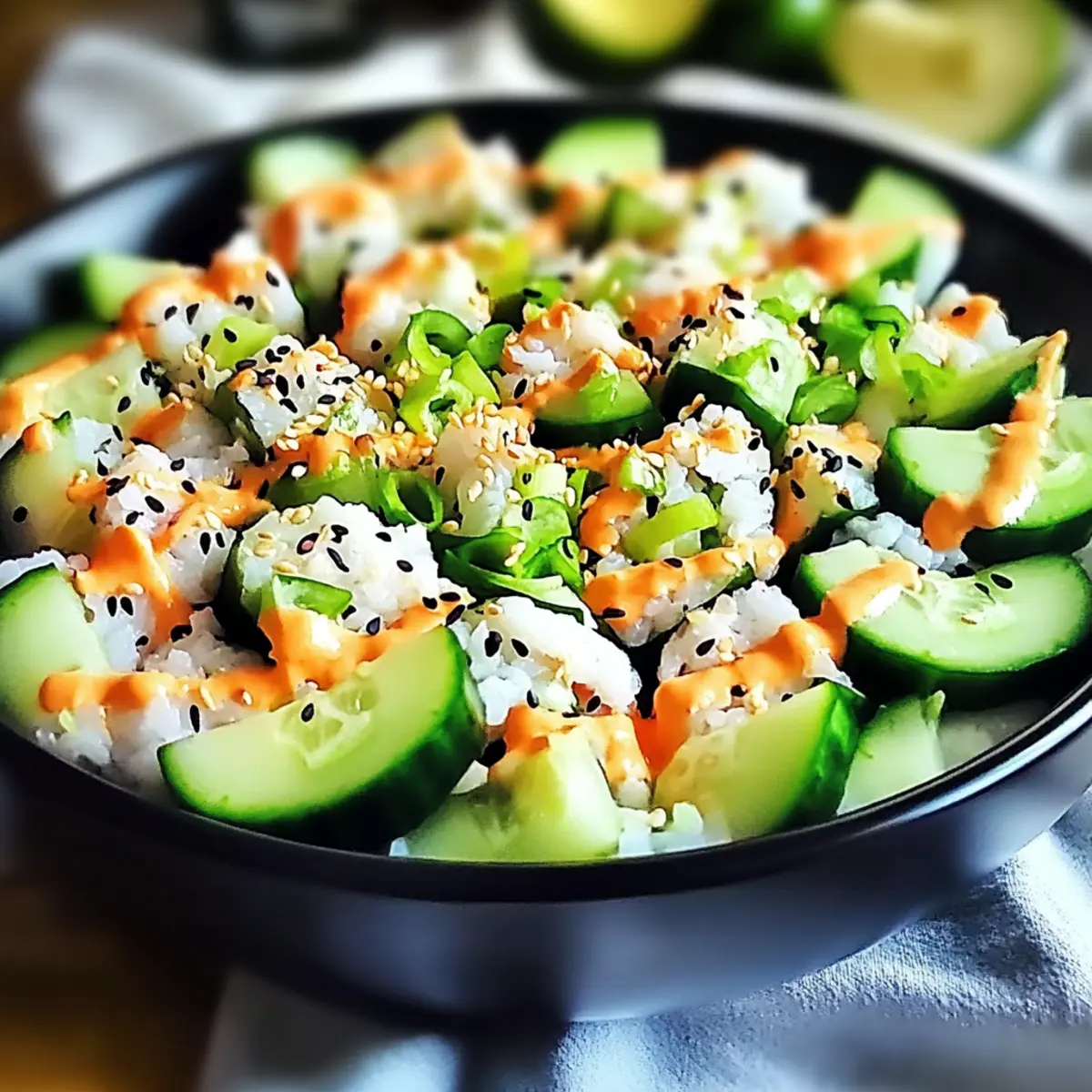 - Dressing Variations: Experiment with different vinegars or add a splash of lime juice for a zesty twist in your California Roll Cucumber Salad.