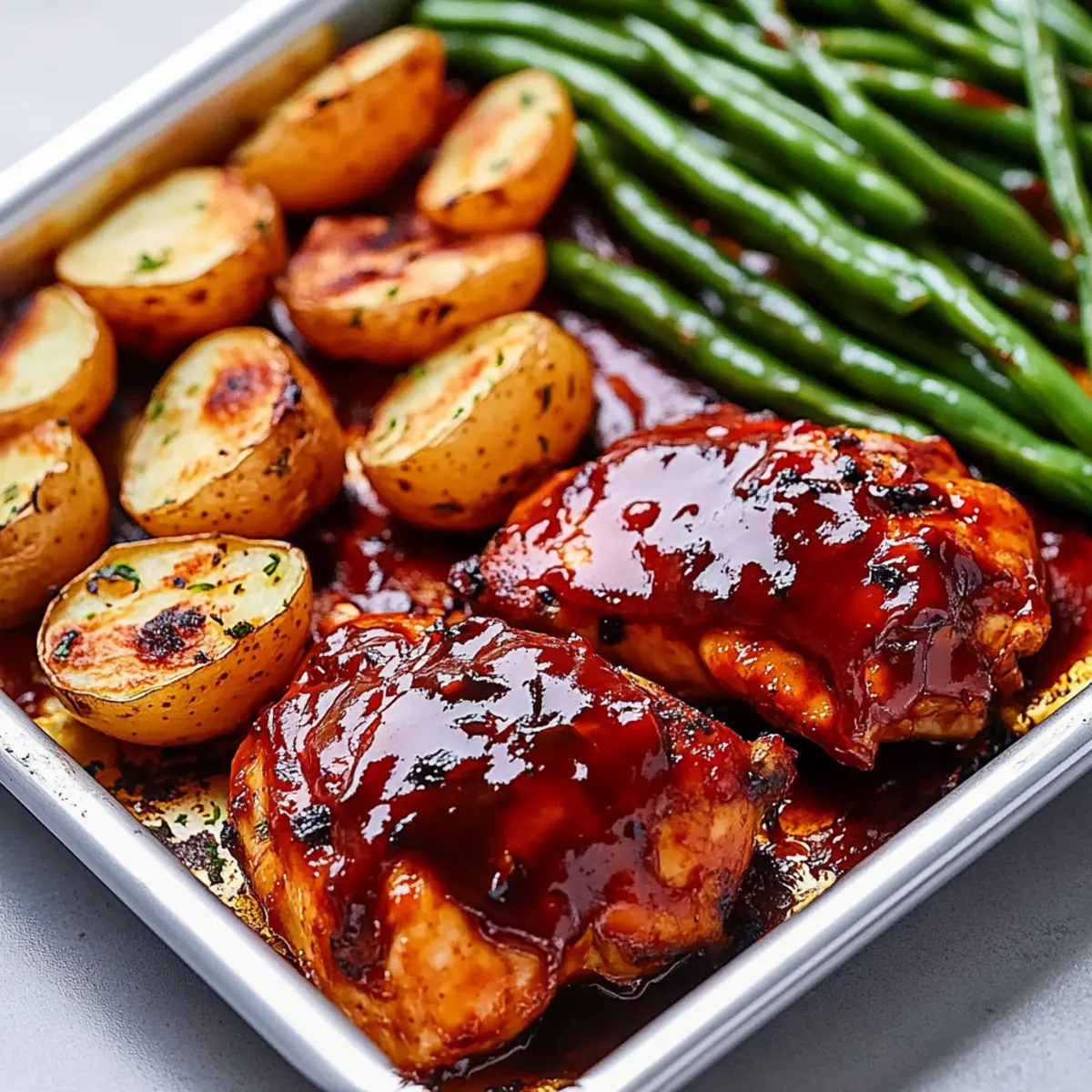 Savory Sheet Pan BBQ Chicken, Potatoes, and Green Beans Delight