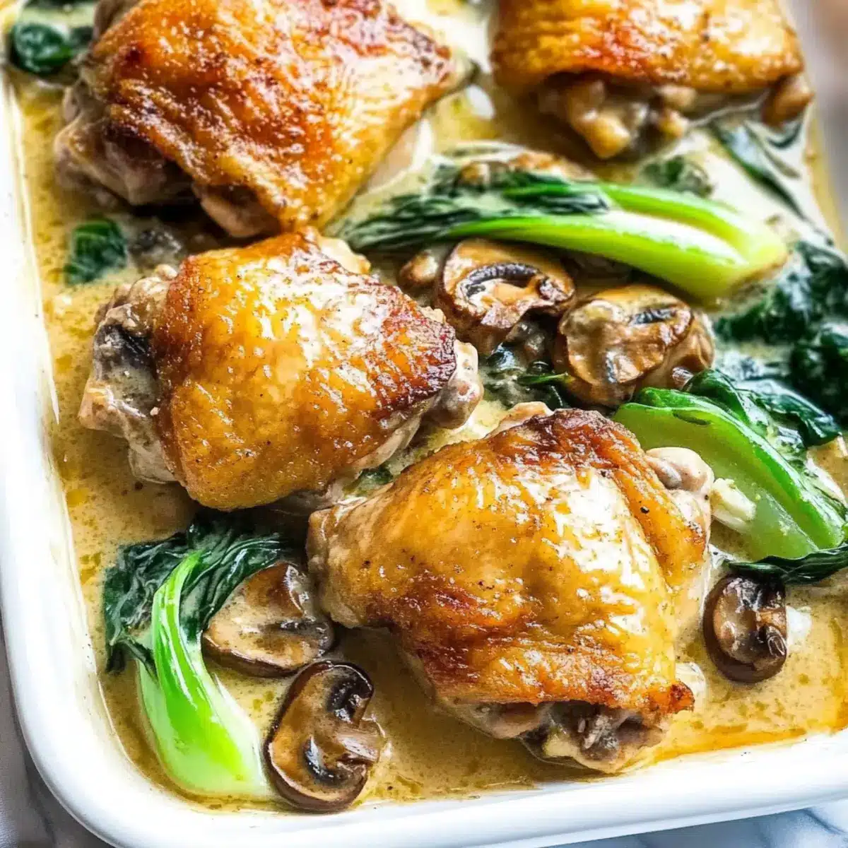 Crispy Easy Smothered Chicken With Bok Choy and Mushrooms
