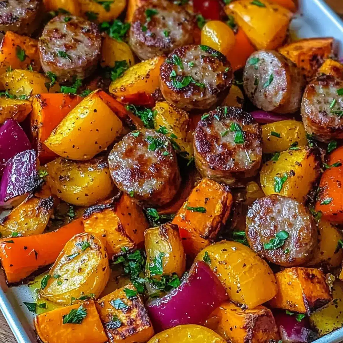 Honey Garlic Sheet Pan Sausage & Sweet Potatoes Bliss