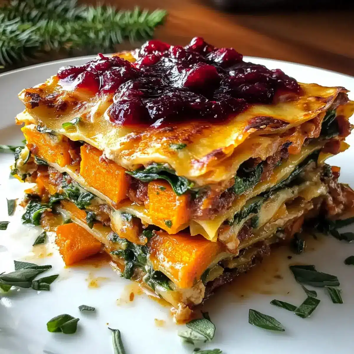 Vegetable Lasagna with Sweet Potato and Cranberry Glaze Delight