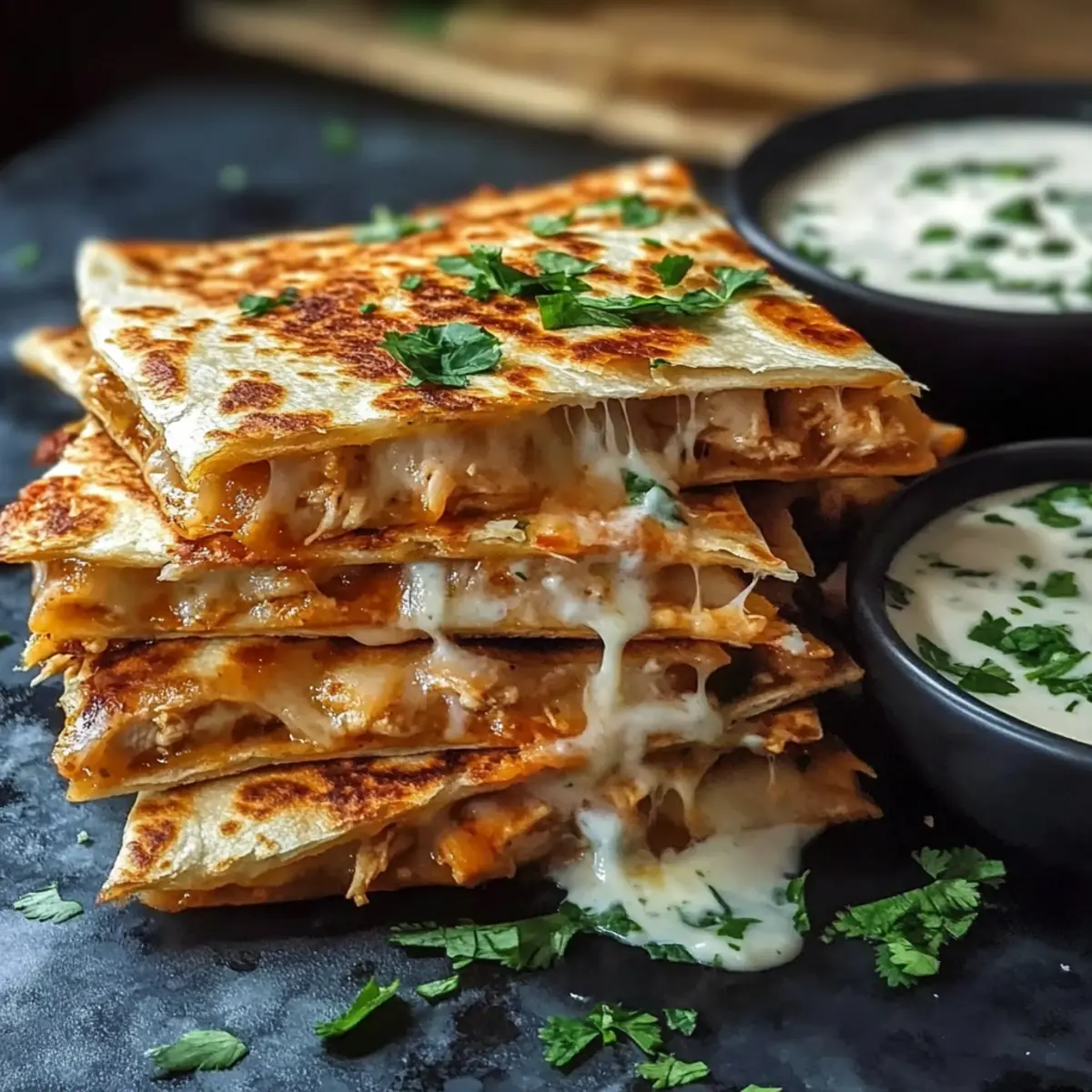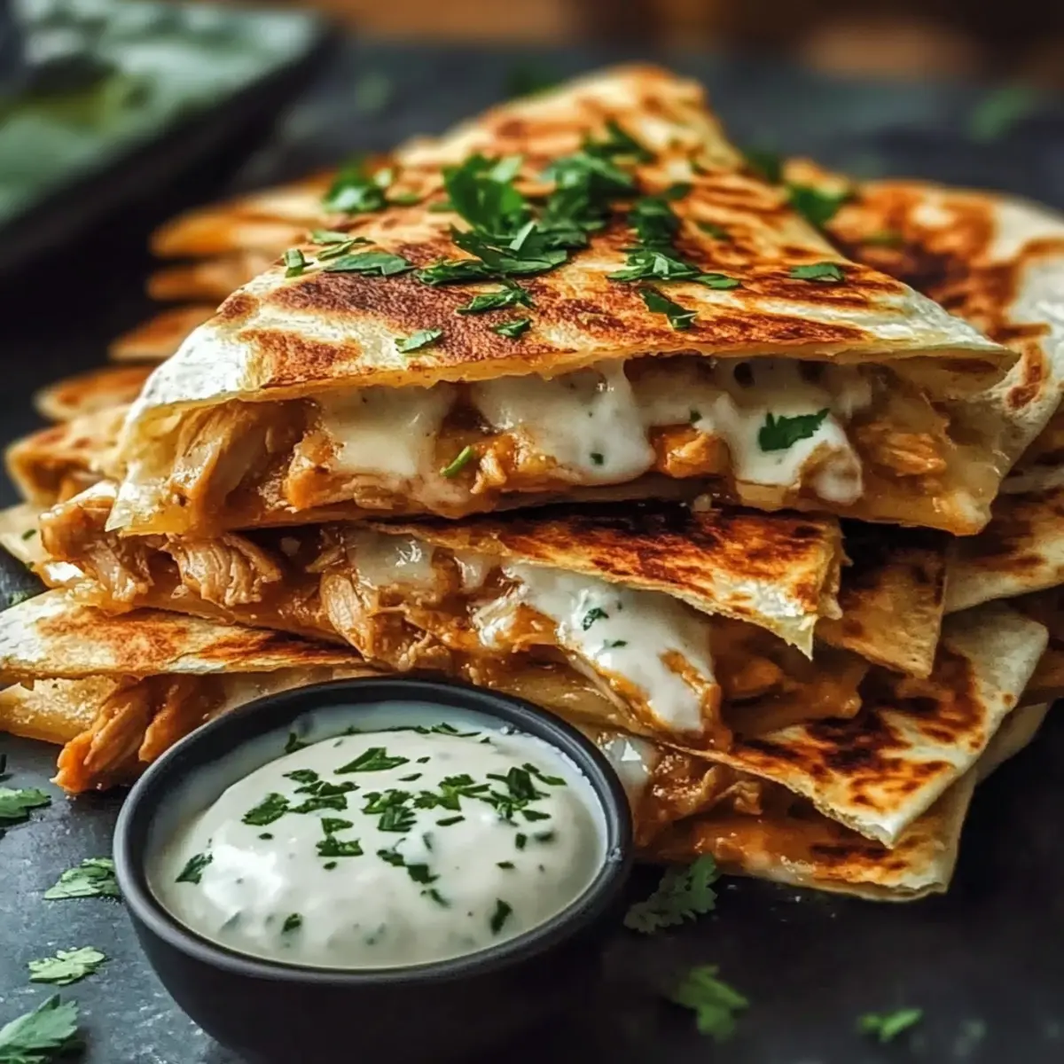 Cheesy Hot Honey Chicken Quesadillas with Spicy Jalapeño Cream Sauce Delight