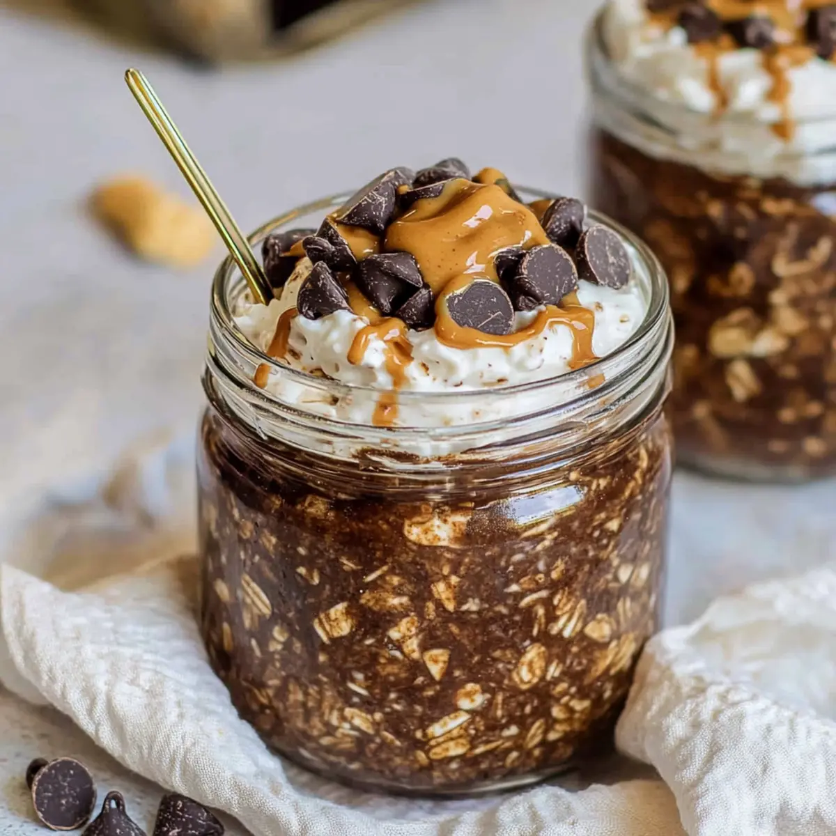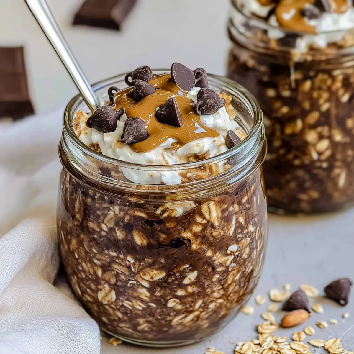 Finally, it’s time to get creative with toppings! Consider adding a dollop of whipped cream, a drizzle of chocolate syrup, or a spoonful of peanut butter for additional flavor and texture. These Chocolate Overnight Oats can be enjoyed cold straight from the jar or warmed in the microwave for a comforting breakfast treat. Enjoy every delightful bite!