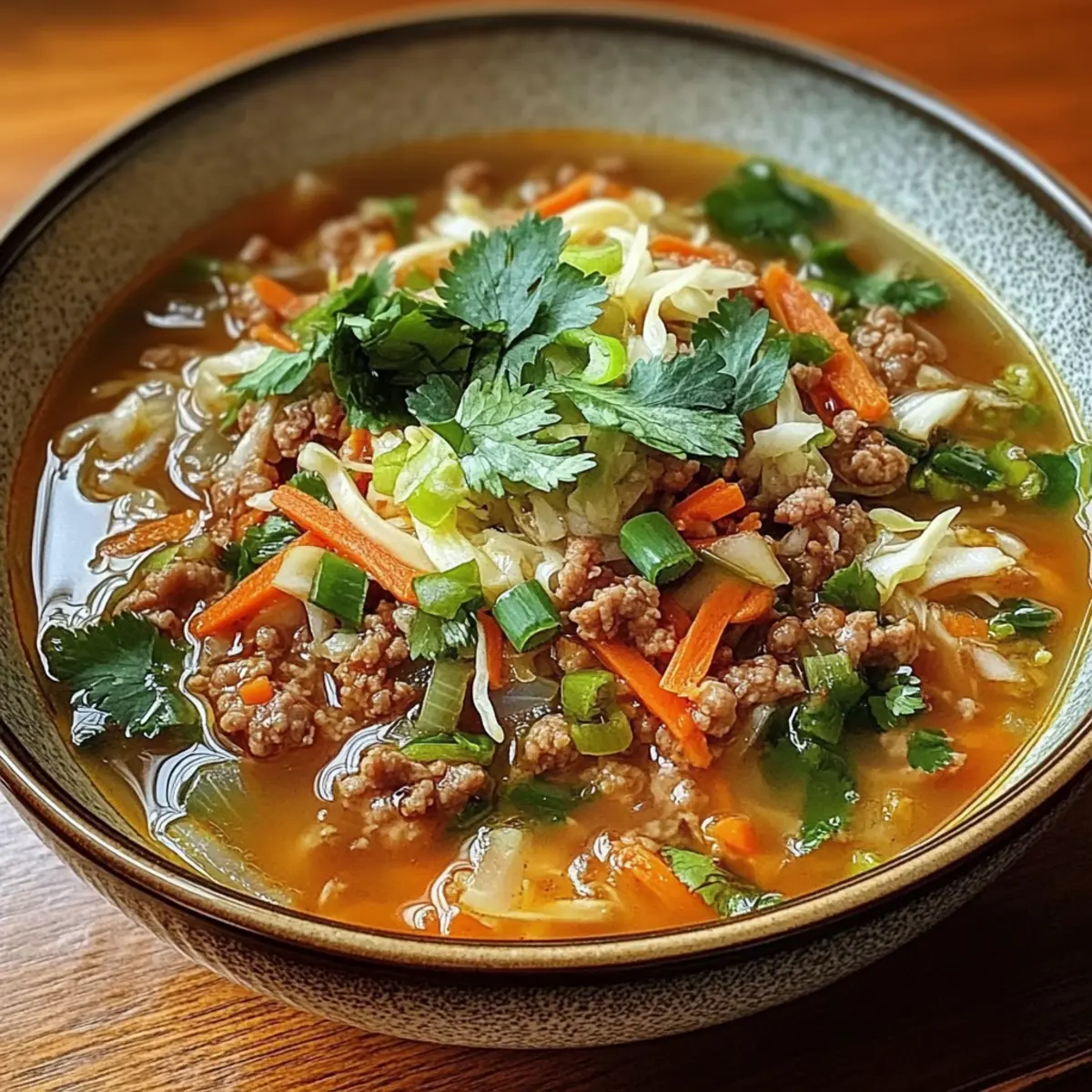 These Cozy One-Pot Egg Roll Soup components are perfect for meal prep enthusiasts! You can chop the vegetables and store them in an airtight container in the refrigerator for up to 3 days. Additionally, feel free to sauté the ground pork and aromatics, then allow them to cool before refrigerating. To maintain quality, avoid adding the broth until you’re ready to serve. When you’re ready to enjoy this delicious soup, simply heat the pork mixture, add broth, and incorporate the coleslaw mix, simmering until tender. This way, you’ll have a hearty, comforting meal ready in no time, perfect for those busy weeknights!