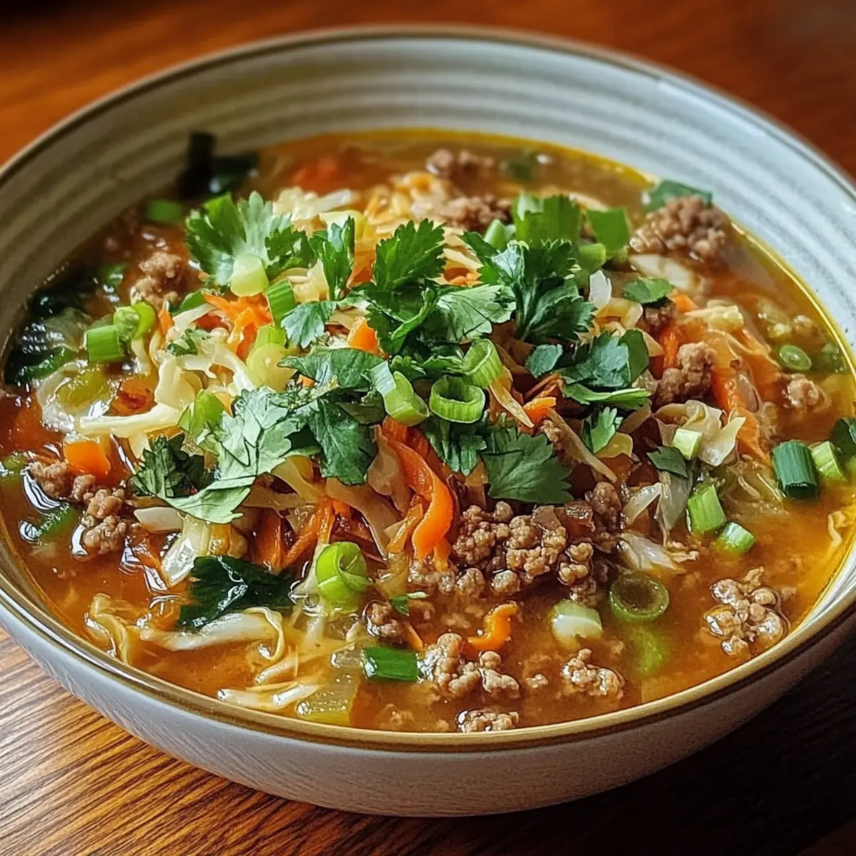 • Green Onions, Sesame Seeds, and Cilantro – Fresh garnishes that add both flavor and a pop of color to your Cozy One-Pot Egg Roll Soup.