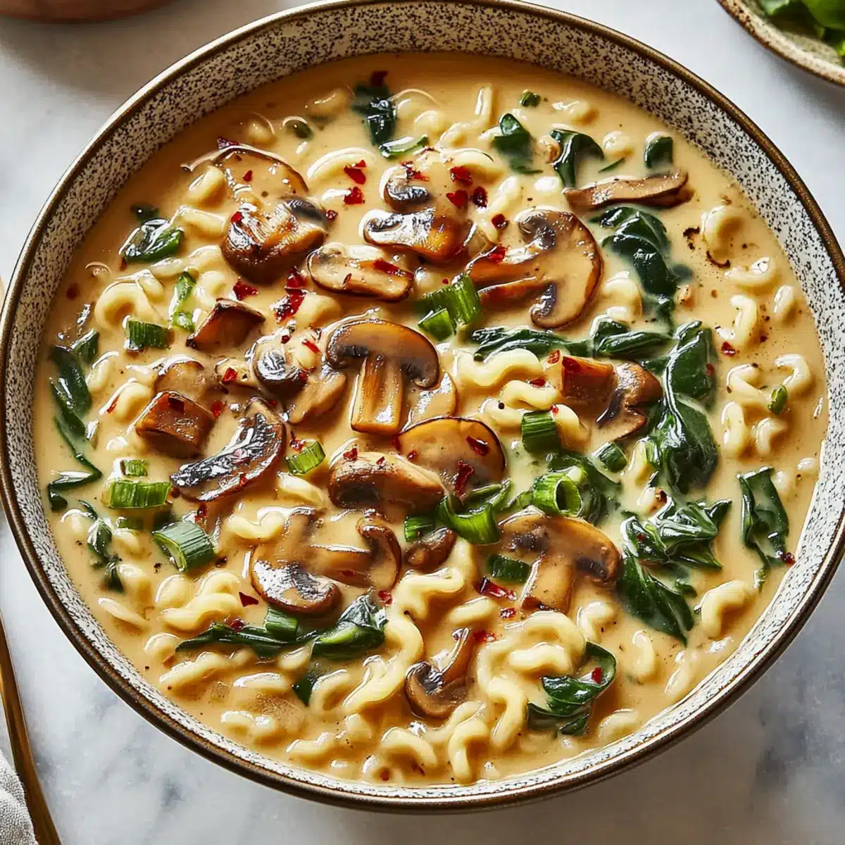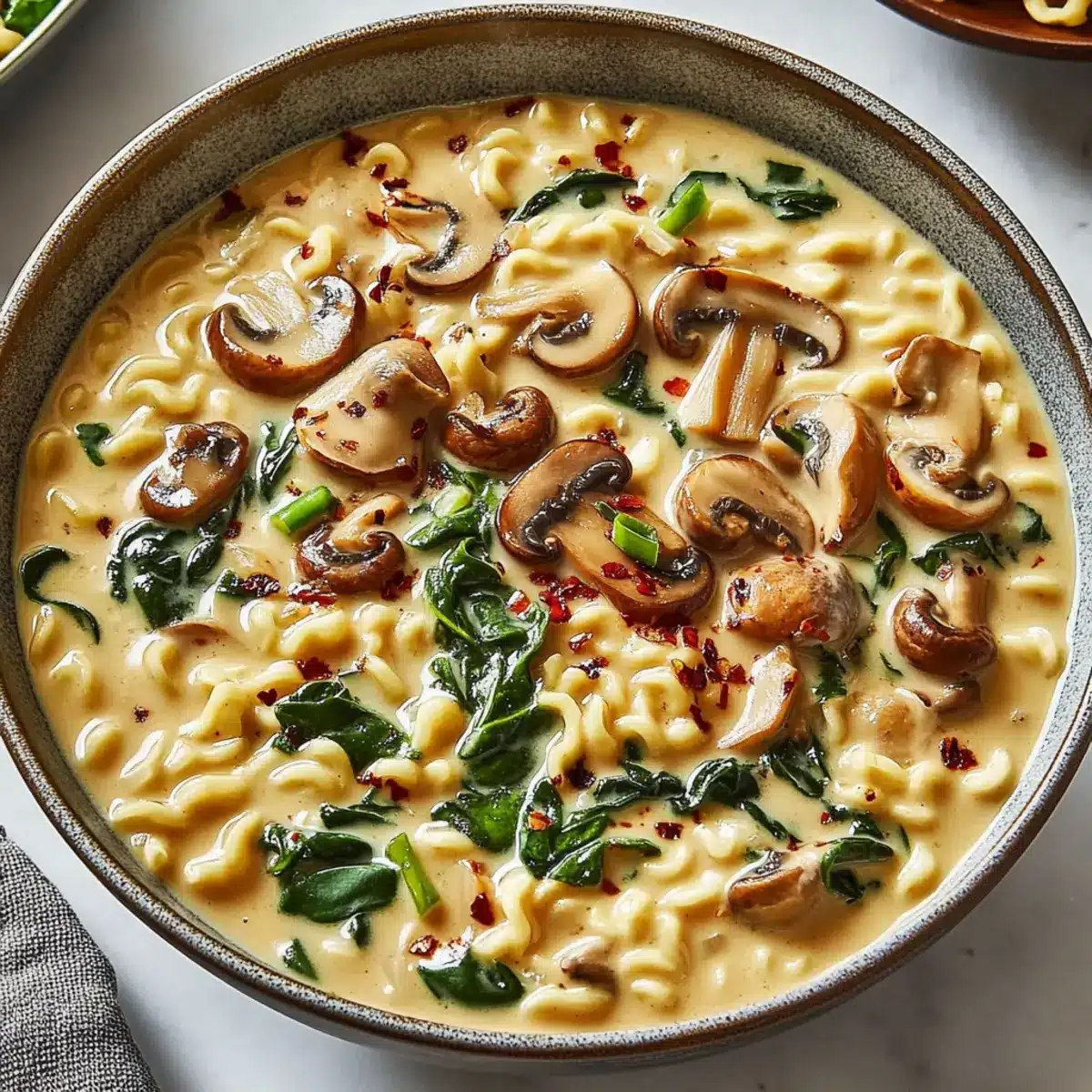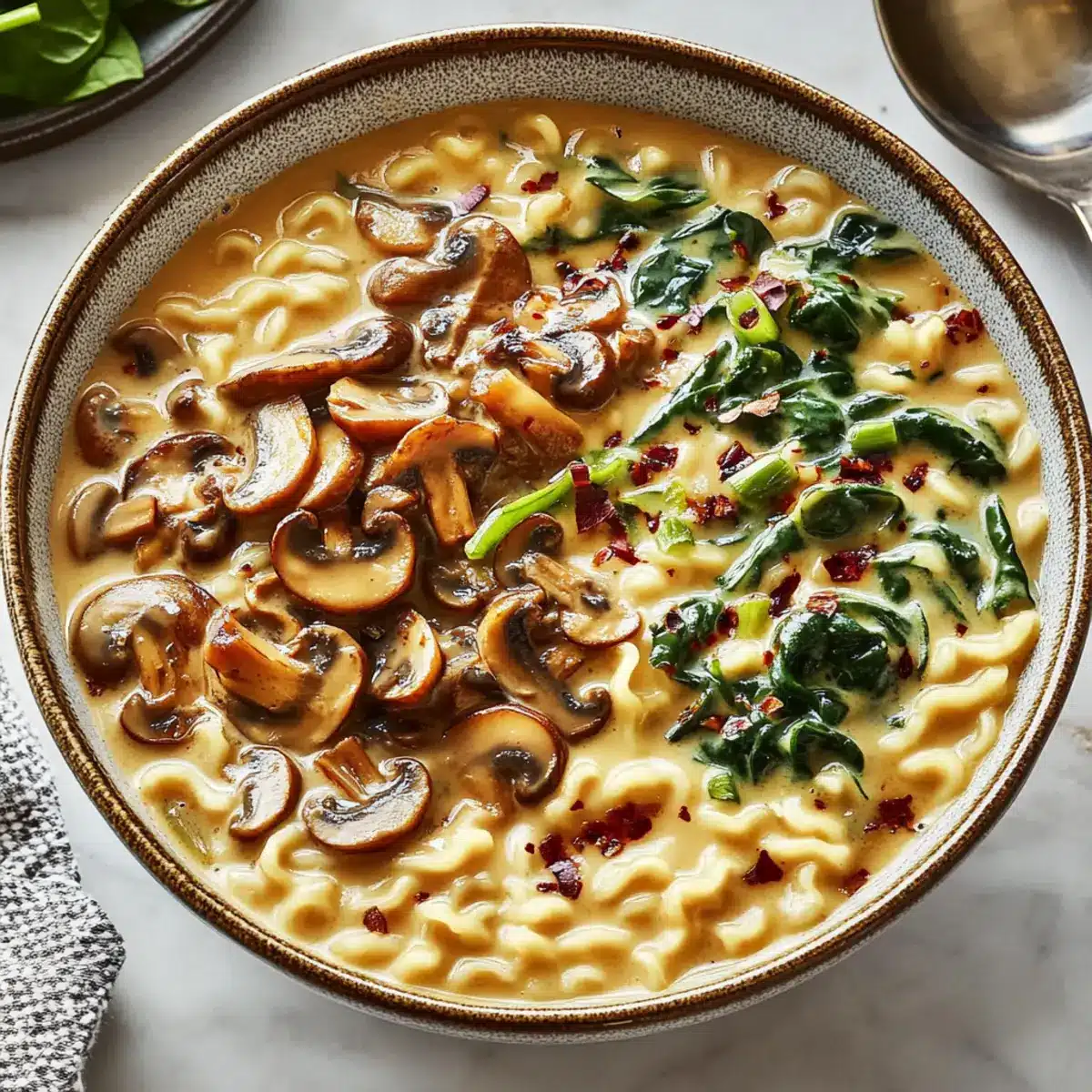 Versatile Vegetables: Feel free to mix and match greens! If you have kale or bok choy on hand, swap them for spinach for a delicious texture twist in your creamy mushroom vegan ramen.