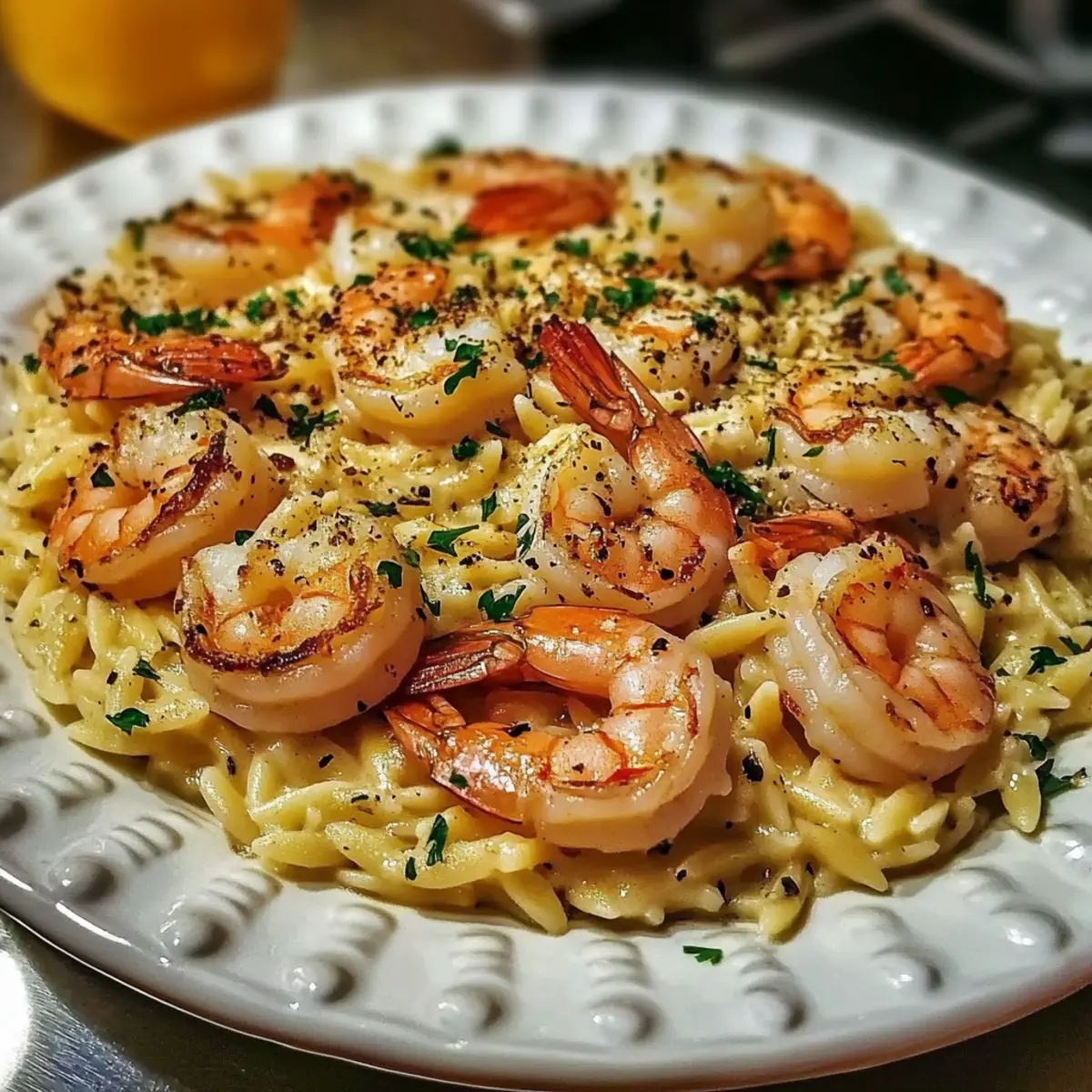 - Season the Creamy Shrimp Orzo with salt and pepper to taste. Remove from heat and sprinkle with fresh parsley before serving.