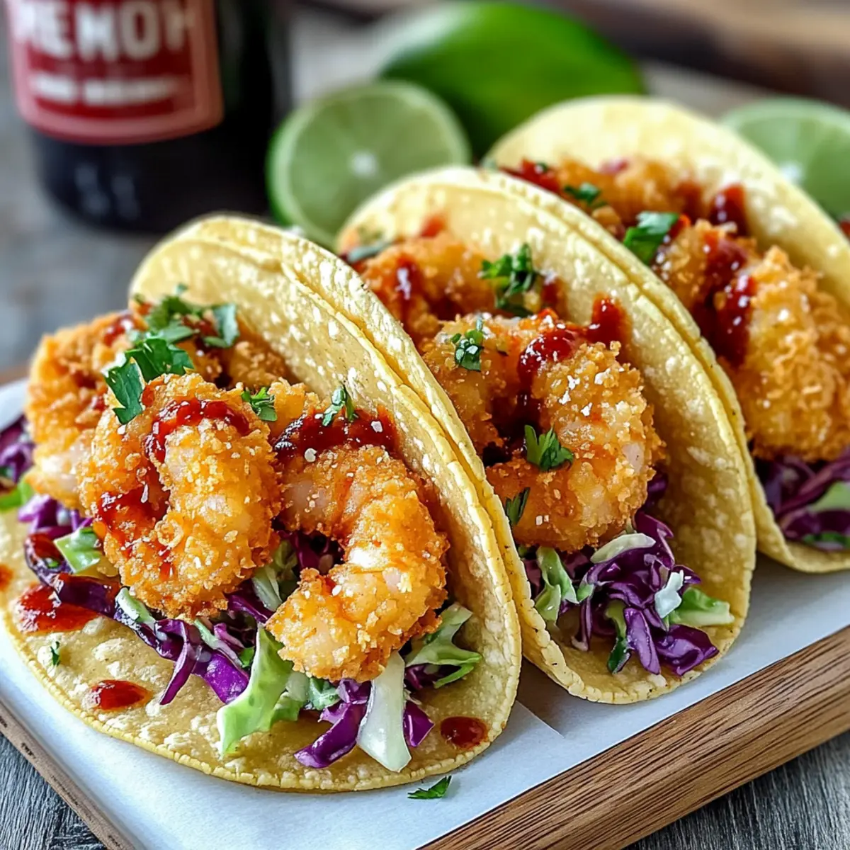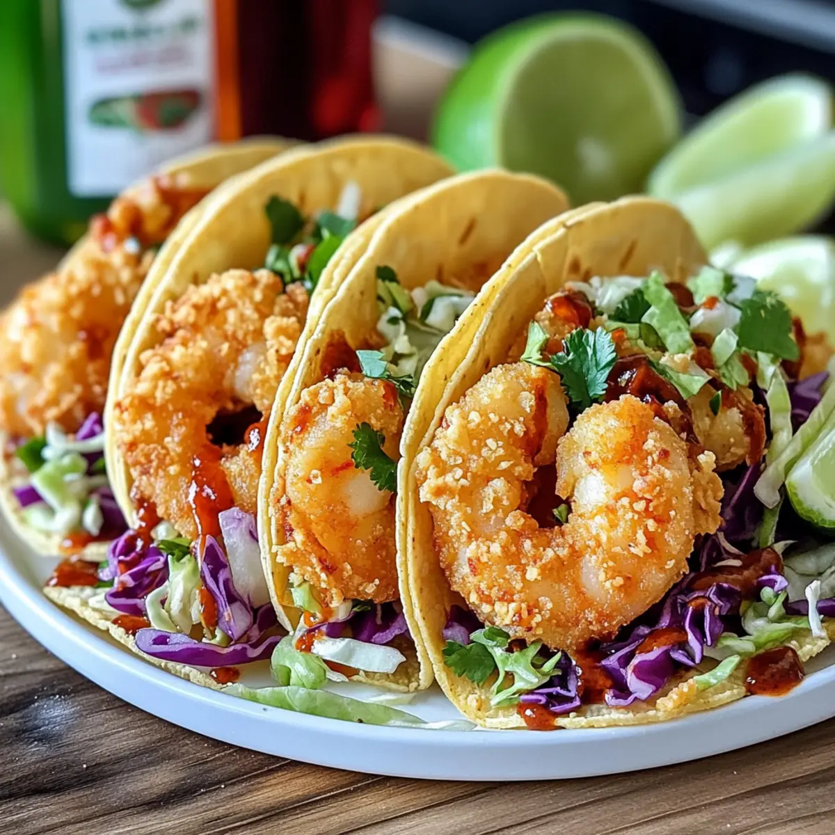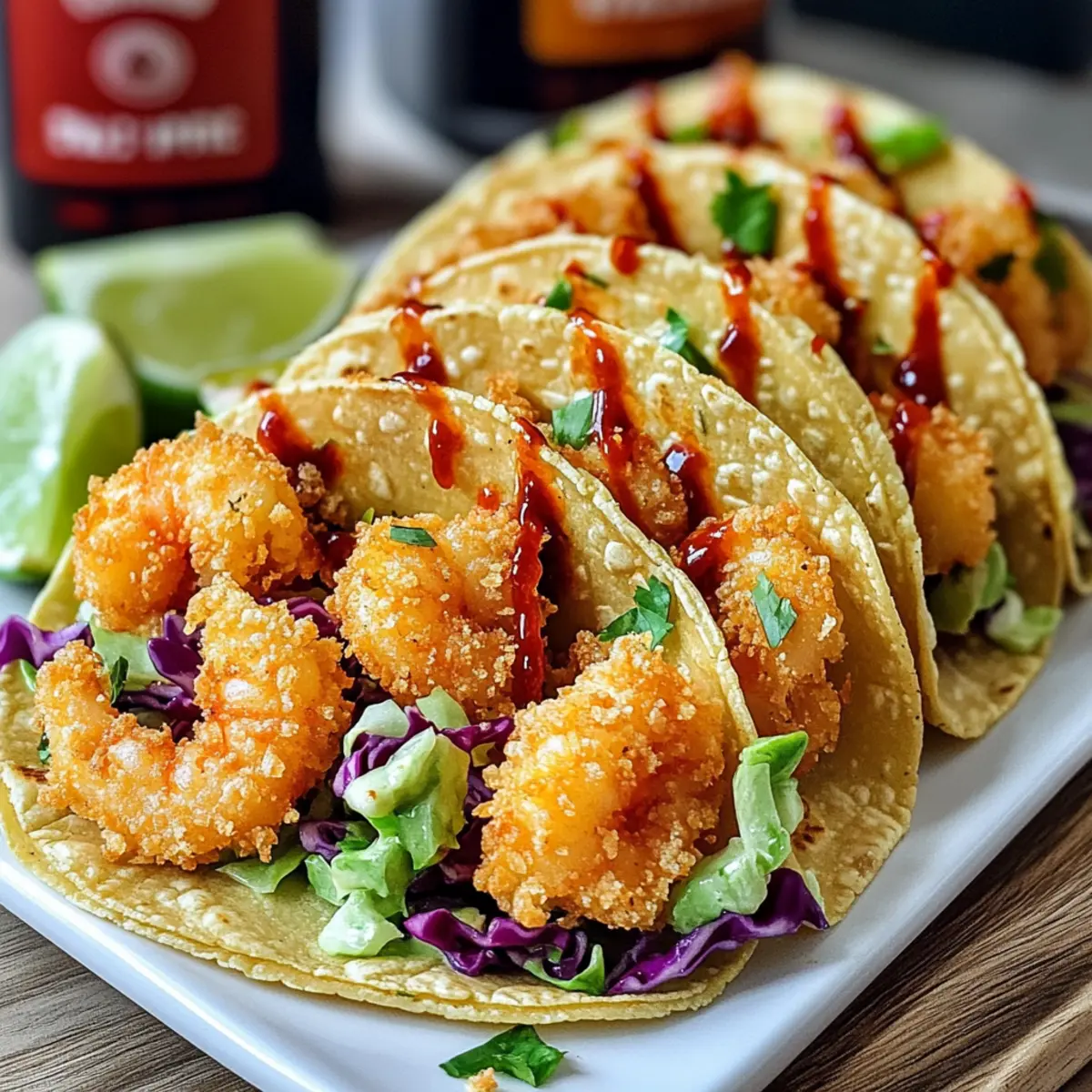 - To assemble, fill each taco shell with slaw, add crispy shrimp, and drizzle with sweet chili sauce or spicy mayo. Garnish with green onions or cilantro and serve immediately.