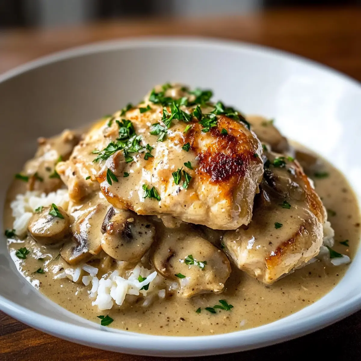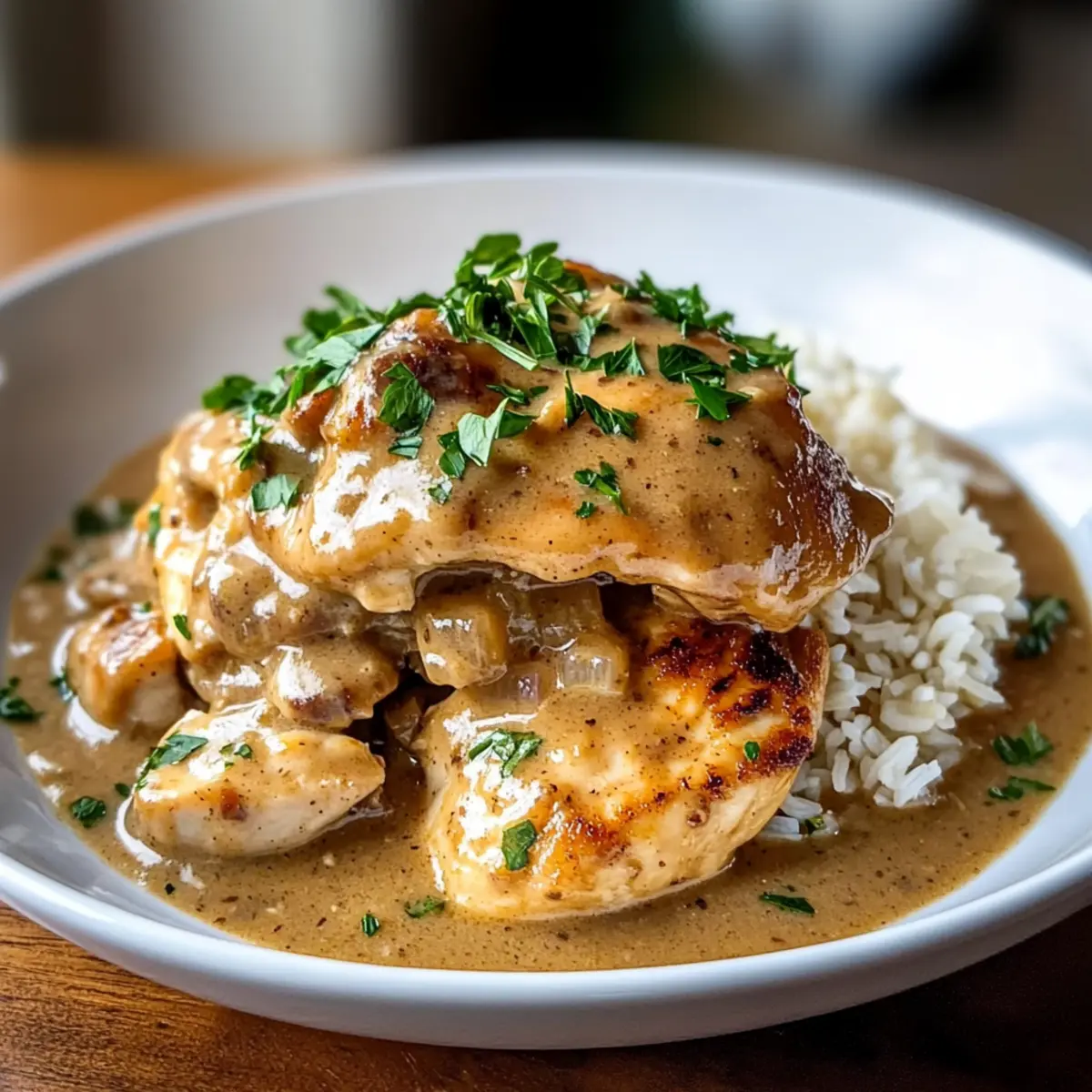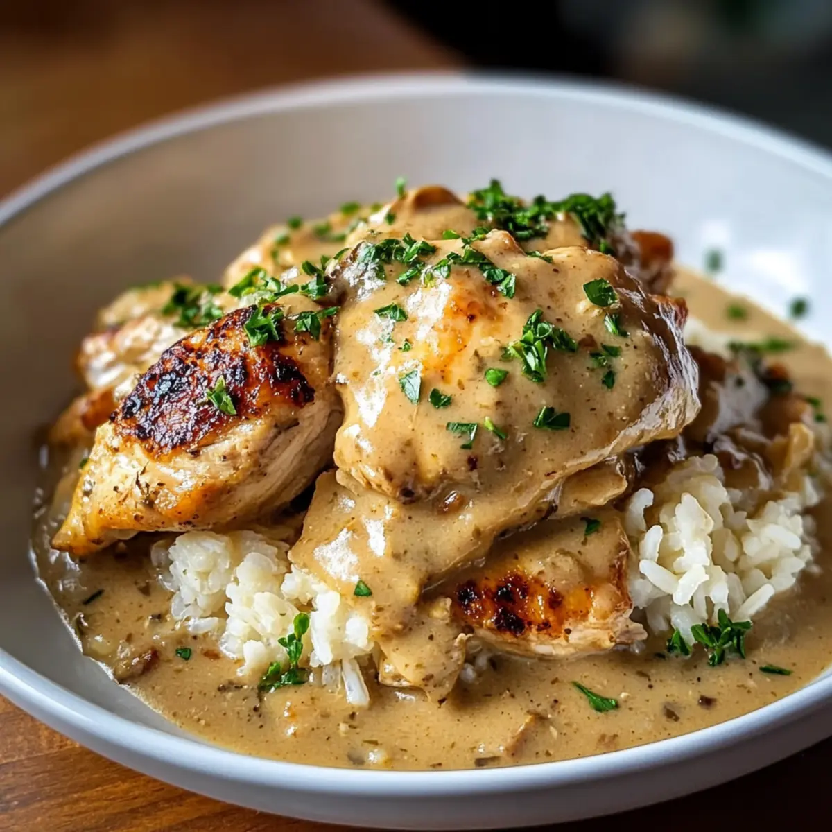 - Ladle the crockpot chicken and gravy over fluffy rice or creamy mashed potatoes, garnishing with freshly chopped parsley.