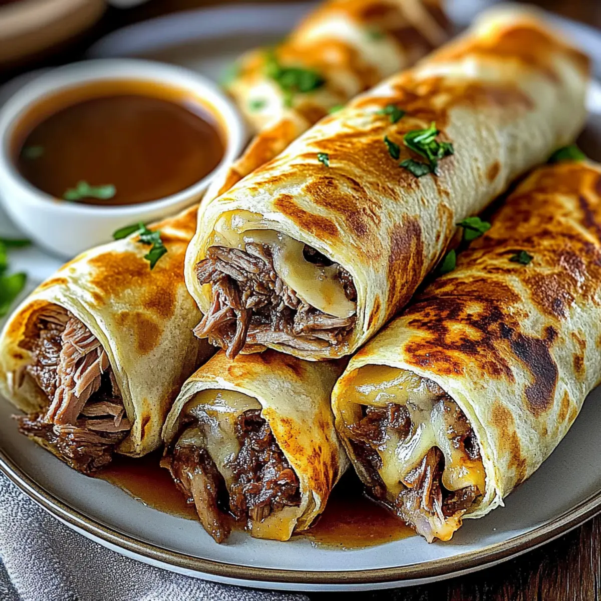 - Choose Quality Ingredients: Opt for high-quality roast beef and cheese to elevate the taste of your French Dip Tortilla Roll Ups—your palate will thank you!