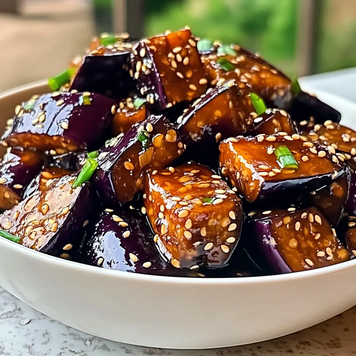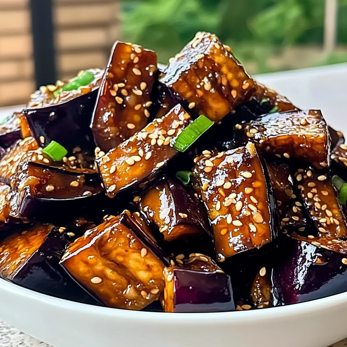 As the final touch, top your dish with sliced green onions and a sprinkle of sesame seeds for added crunch and flavor. Serve the Irresistible Sticky Garlic Eggplant hot over steamed rice or with noodles, making sure to capture every bit of that sticky goodness. Enjoy the beautiful presentation and the vibrant flavors that make this meal a true delight!