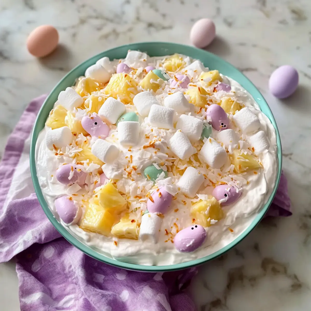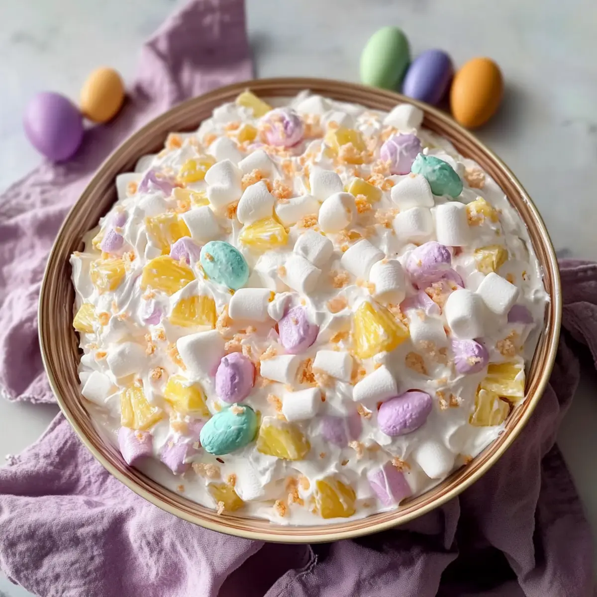Chill Time Matters: Refrigerate for at least 2-3 hours or even overnight. This allows the Marshmallow Easter Fluff Salad to set perfectly, enhancing the flavors.