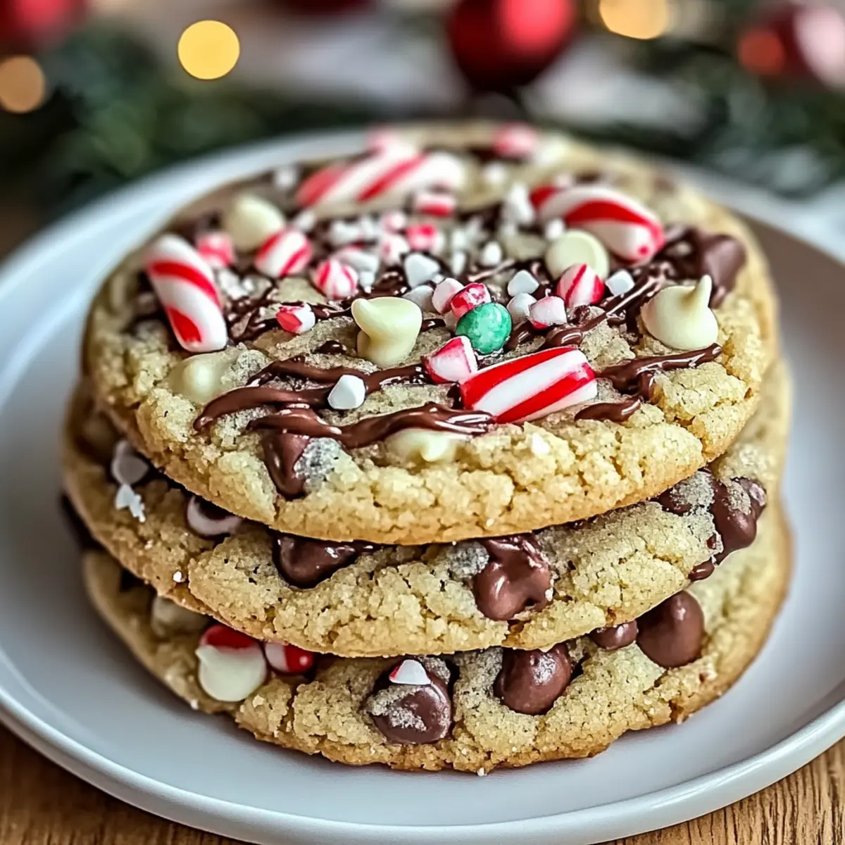 - Fold in chocolate chips, white chocolate chips, and crushed candy canes.