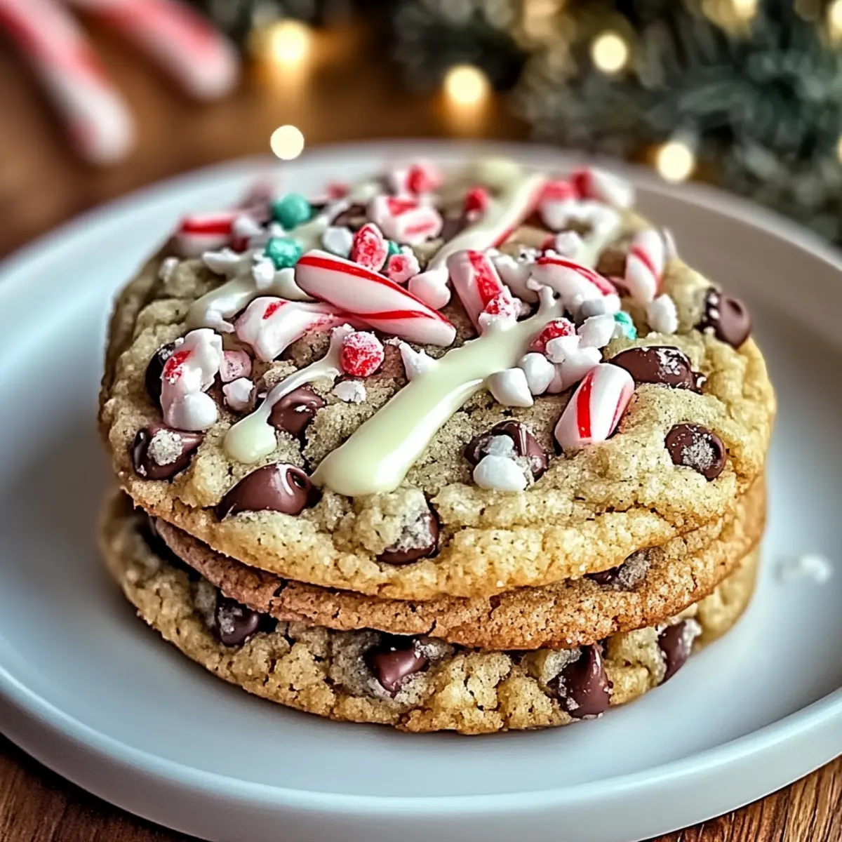 For the final touch, melt some white chocolate and drizzle it over your cooled cookies. Then, sprinkle with additional crushed candy canes and holiday sprinkles for an eye-catching presentation. Allow the drizzle to set for about 15 minutes before indulging in your Perfect Chocolate Chip Christmas Cookies for Holiday Cheer.