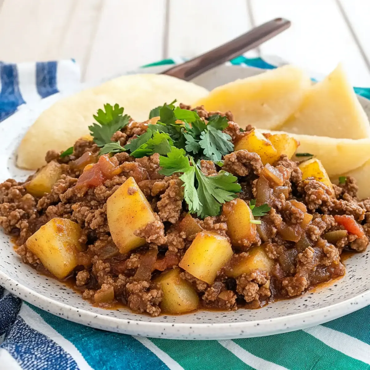 Indulge in a harmonious meal that surrounds your comforting Picadillo with delightful accompaniments, enhancing every bite.