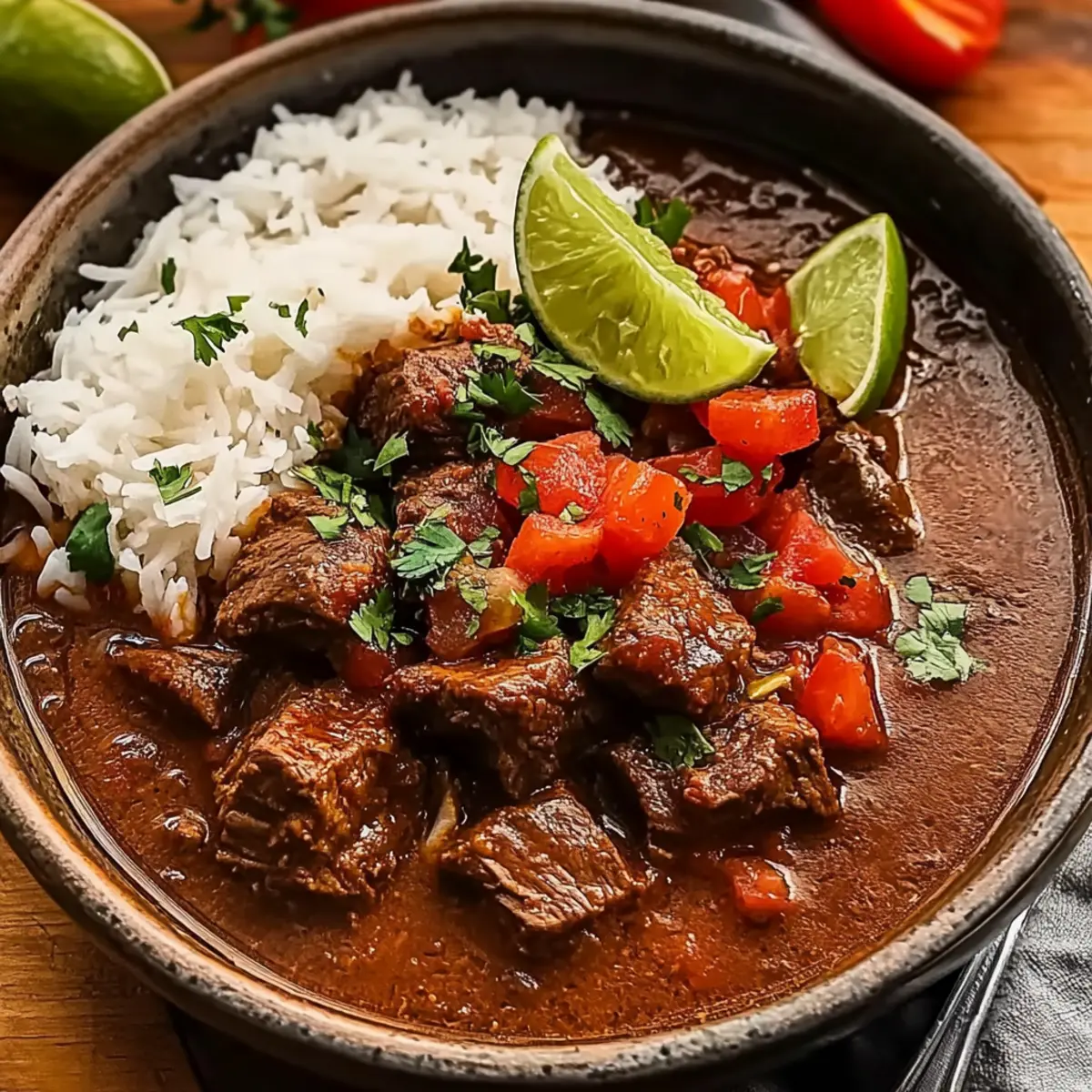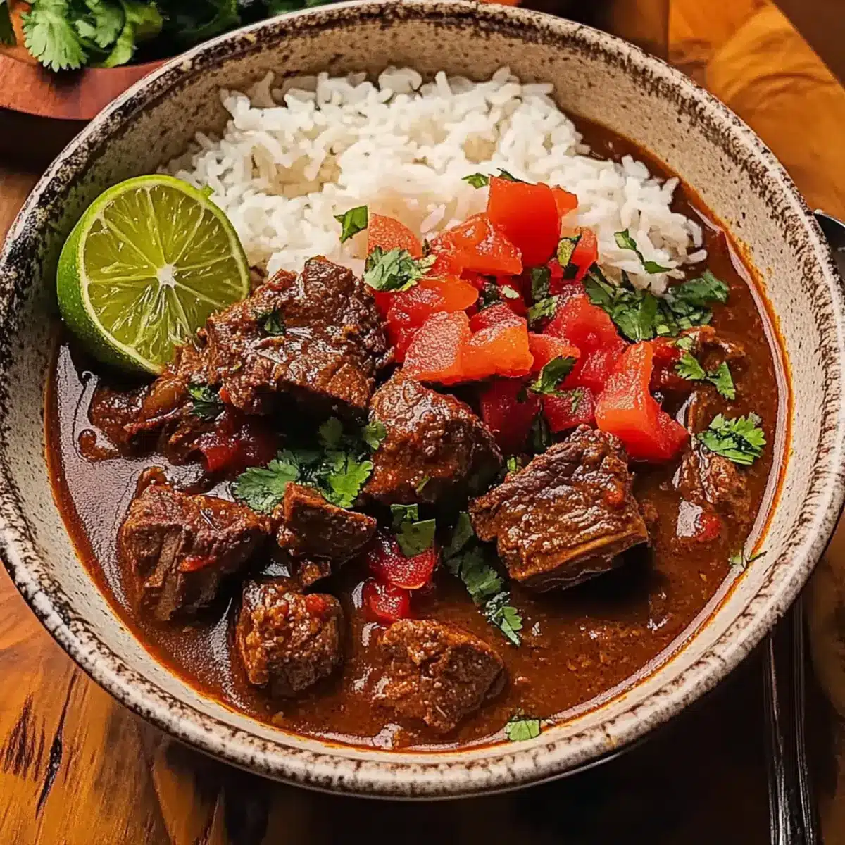The scent of simmering beef dances through the air, beckoning me to the kitchen like an old friend. This Comforting Mexican-Style Short Rib Stew is my go-to remedy for chilly evenings, offering cozy warmth and rich flavors that wrap around you like a favorite blanket. Tender, melt-in-your-mouth boneless short ribs simmer slowly among smoky chipotle, fire-roasted tomatoes, and a zesty splash of lime—each bite is a harmonious celebration of Tex-Mex comfort food. Not only is this short rib stew recipe a delight to prepare, but it’s also perfect for feeding a crowd or enjoying a solitary moment of indulgence. Who could resist the allure of a hearty, slow-cooked dish that promises to become a cherished staple in your home? What’s your favorite way to heat things up in the kitchen?