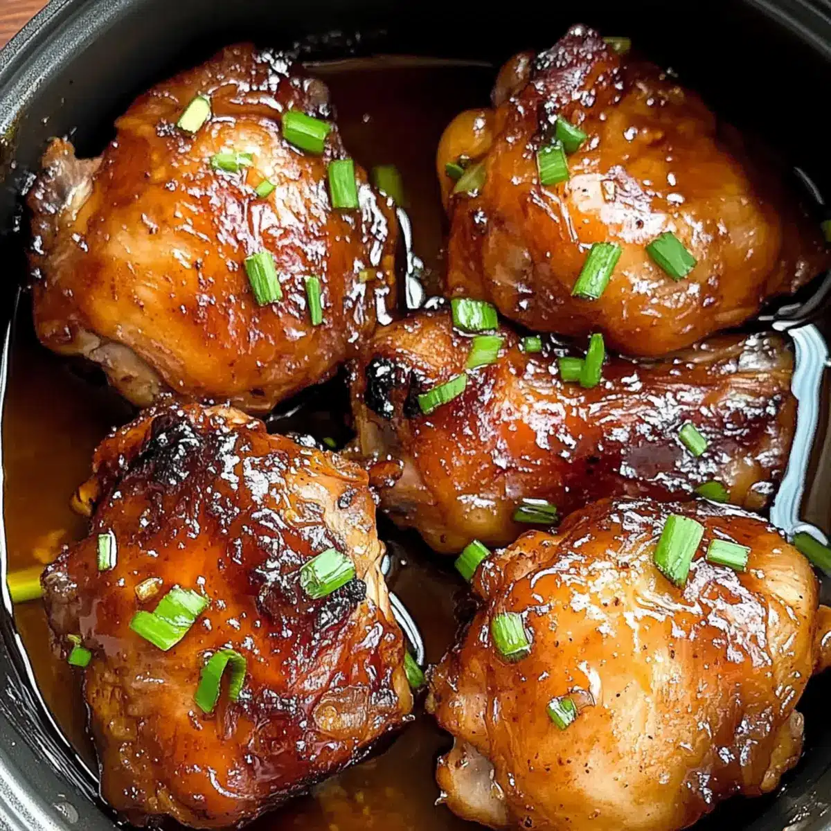 Cover the slow cooker with the lid and set it to cook on HIGH for 2-3 hours or LOW for 5-6 hours. Baste the chicken thighs halfway through the cooking time with the honey garlic sauce to ensure they remain juicy and flavorful. The chicken is done when it reaches an internal temperature of 165°F (74°C) and is tender enough to fall apart.