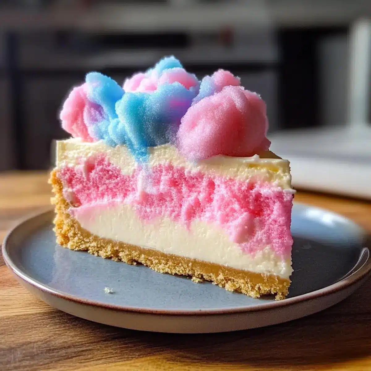 Whimsical Appeal: This Sweet Cotton Candy Cheesecake captures the joy of circus treats, making it perfect for festive gatherings.
