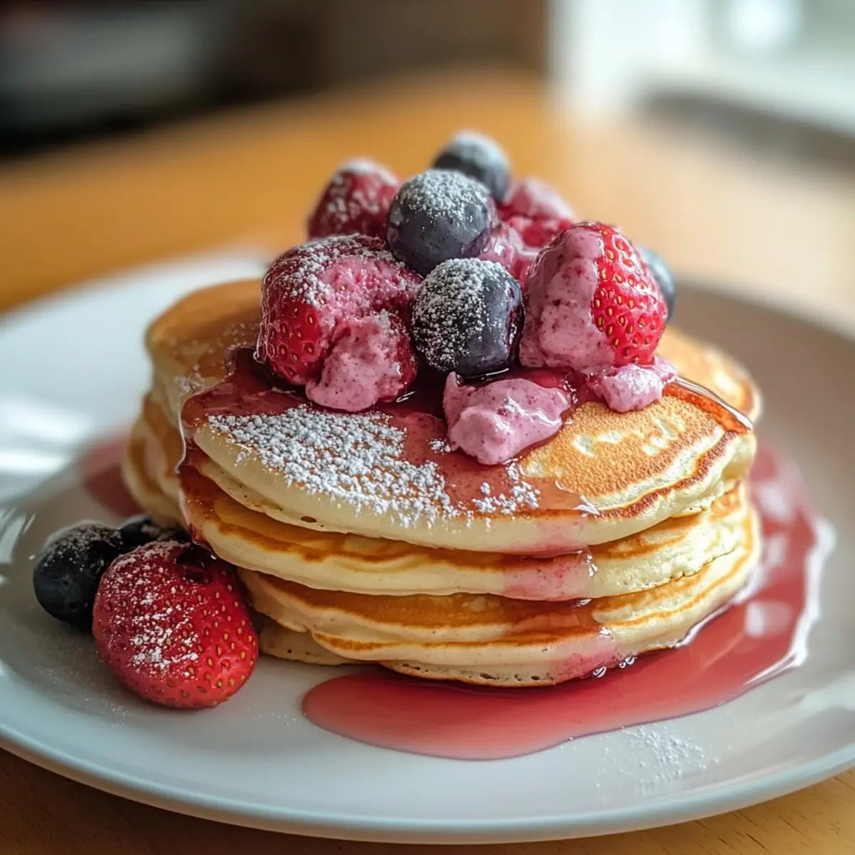 Berry Bliss: Add fresh blueberries or strawberries to the batter for a burst of fruity flavor. The berries add a touch of sweetness and vibrant color, making your pancakes irresistible.