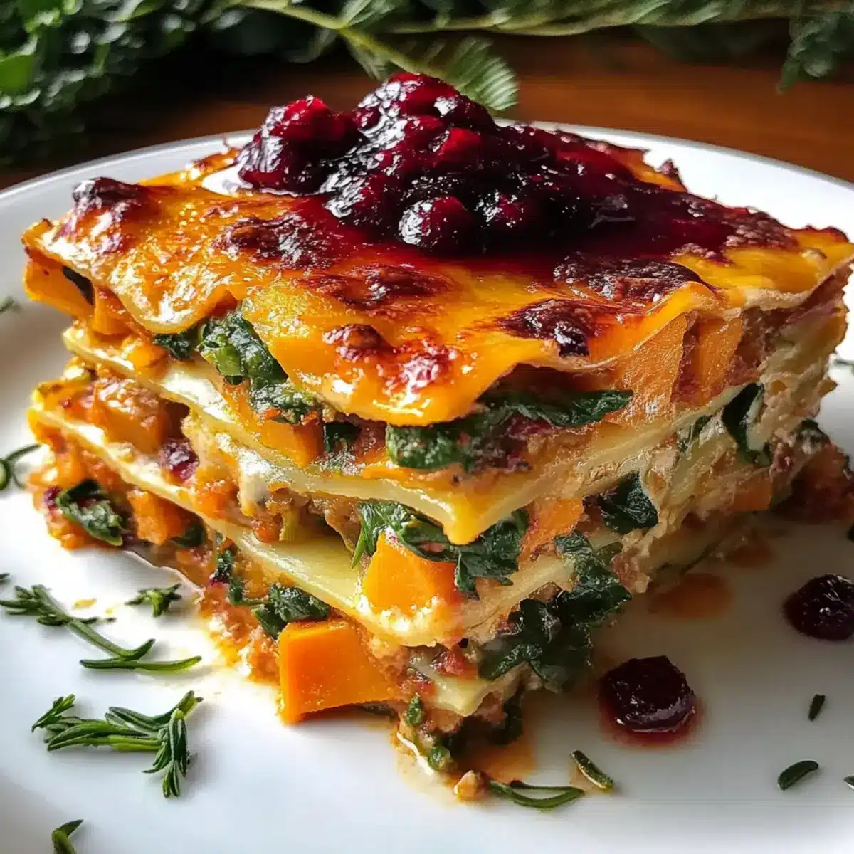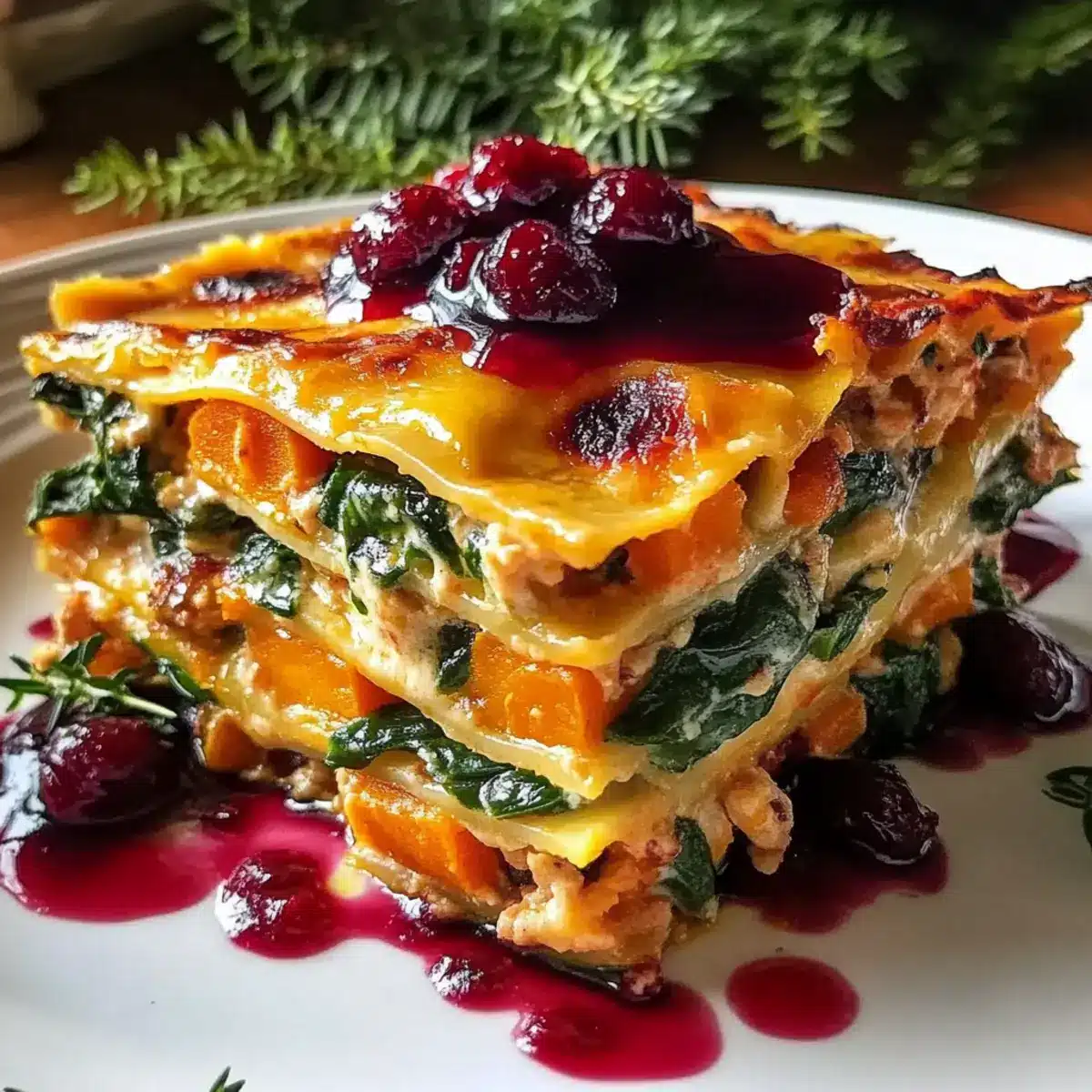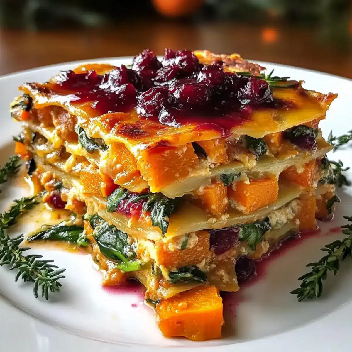 Vegetable Lasagna with Sweet Potato and Cranberry Glaze Delight